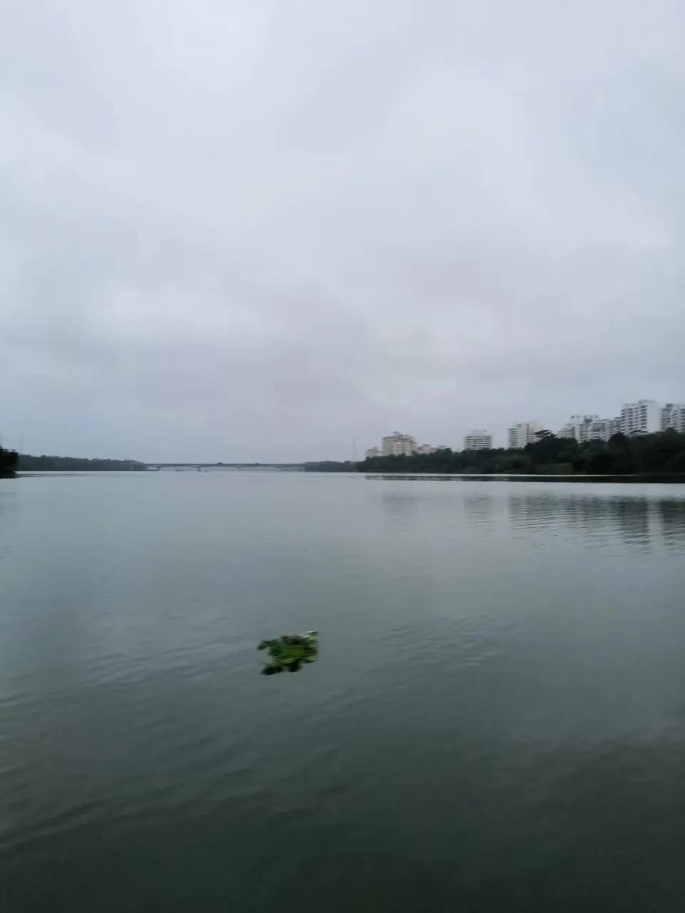 我们一行人,身穿救生衣,在万泉河上漂流。名为漂流,其实无一丝风险:船大水缓,全程没有遭遇浪涛袭击。沿河两岸,一边高楼林立,一边绿植如山。天气阴沉,又是下午六点左右,光线朦朦胧胧,可碧清清的万泉河里,还是楼群、绿山、灯光倒影依依。远处,有两个嬉水者在仰泳。