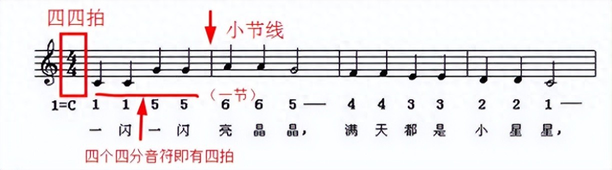 四四拍指的是以四分音符为一拍,每小节有4拍,四二拍、八三拍以此类推。