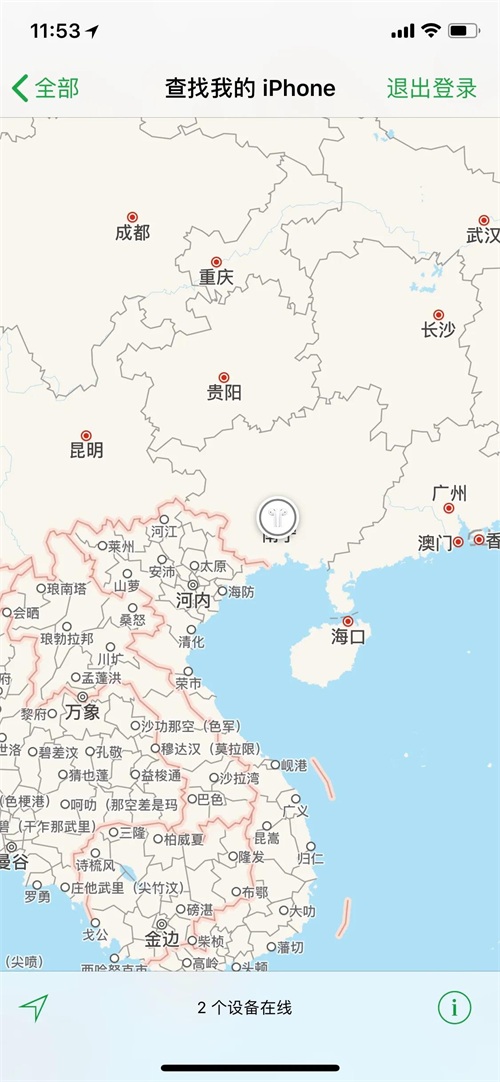 3.登录之后我们就可以看到我们的苹果手机现在的具体位置在哪里了。