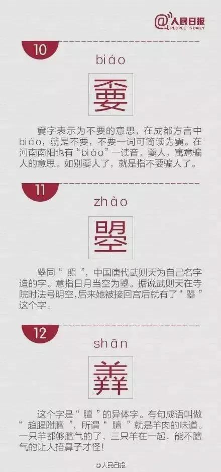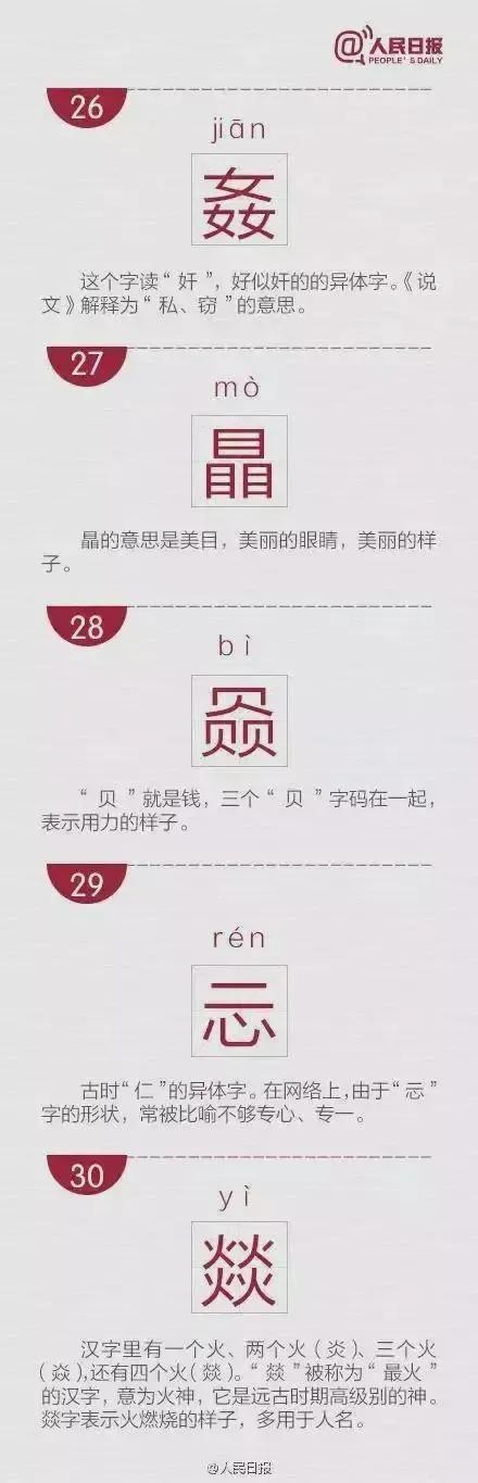下面就带大家一起来看看人民日报选出来的那30个难认的汉字,看看你们认识几个?