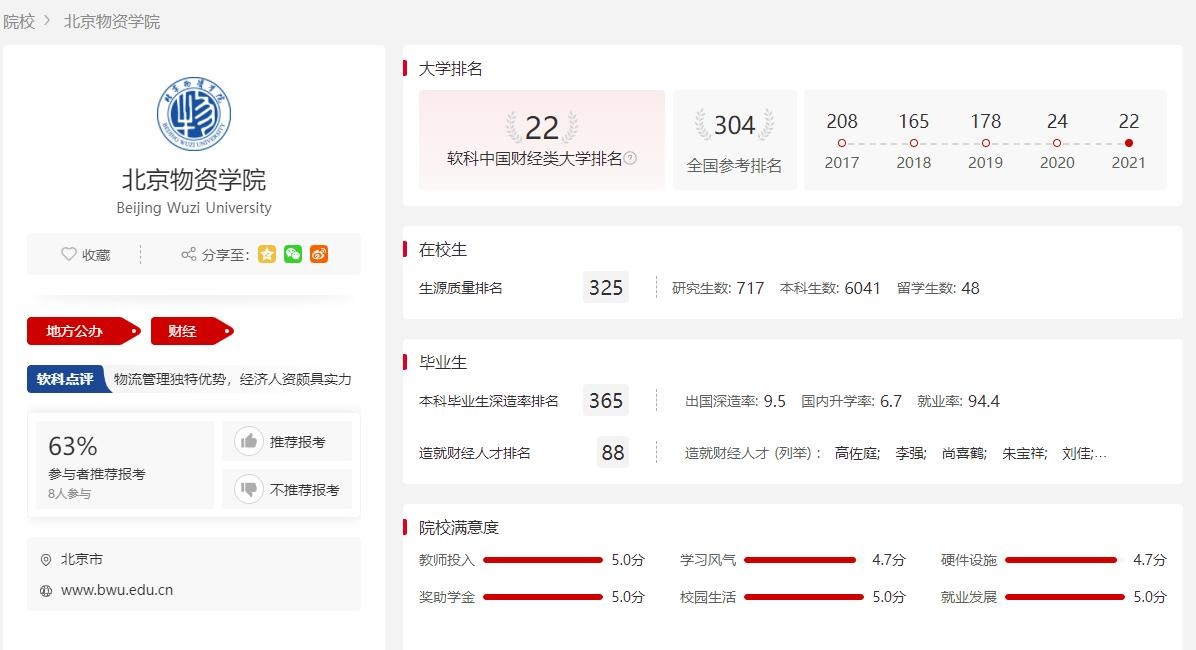 北京物资学院不要被名字迷惑了;实际上财经金融学科为主的商科院校,优势专业都是在商科方面;物流方面只是该校的一个小的优势点;设有几个和物流相关的实验室,毕业生的就业方向还是以金融财经单位;物流企业的方向为次。但是每年高考分数不低哦;比一般的省的普通一本院校分数要高一点点;主要还是在北京市,毕业以后升学和就业方面的优势很明显。