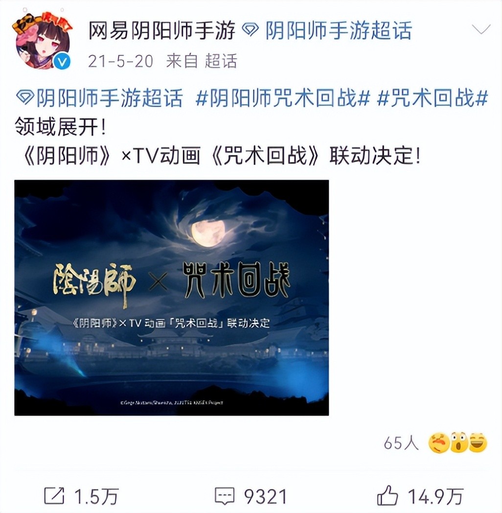其实这件事与游戏有关,是因为网易在将近一年之前,就曾宣布过自家阴阳师全家桶将要和《咒术回战》进行联动。