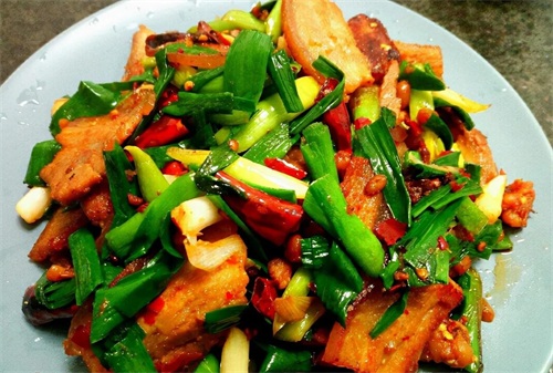 5、加入蒜苗,生抽,盐,翻炒均匀,美味即成!