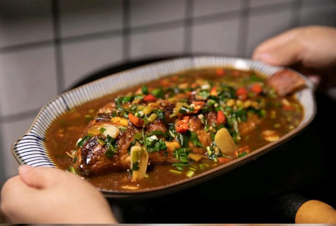 中午婆婆用豆豉做了一个豆豉红烧鱼,味道很不错哦!
