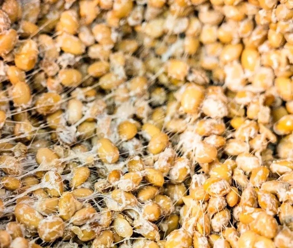 3、煮好的黄豆稍微晾凉,装袋子里,45度左右恒温3——5天,豆子自然发酵拉丝就成功啦!