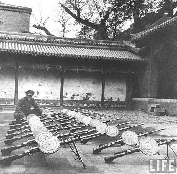 1951年1月,36个苏联师武器运抵中国,中方要求先提供14万支步枪,2.6万支自动步枪,9000挺机枪和1000支手枪,以及配套子弹1.75亿发。轻机枪主要就是 DP系列!!