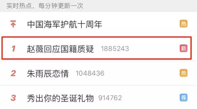 今天(12月25日),#赵薇回应国籍质疑#的微博话题突然冲到了微博热搜榜第一。