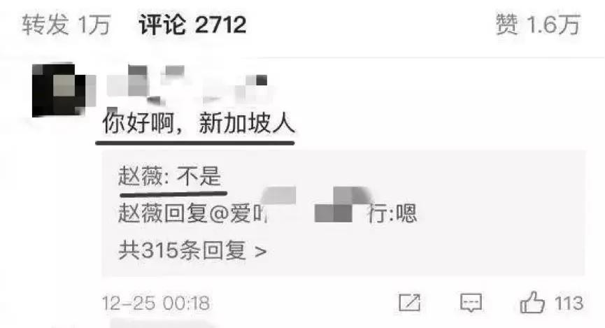 结果有网友评论:你好啊,新加坡人。本尊亲自下场回应:不是!目前这名网友已经删除了评论。