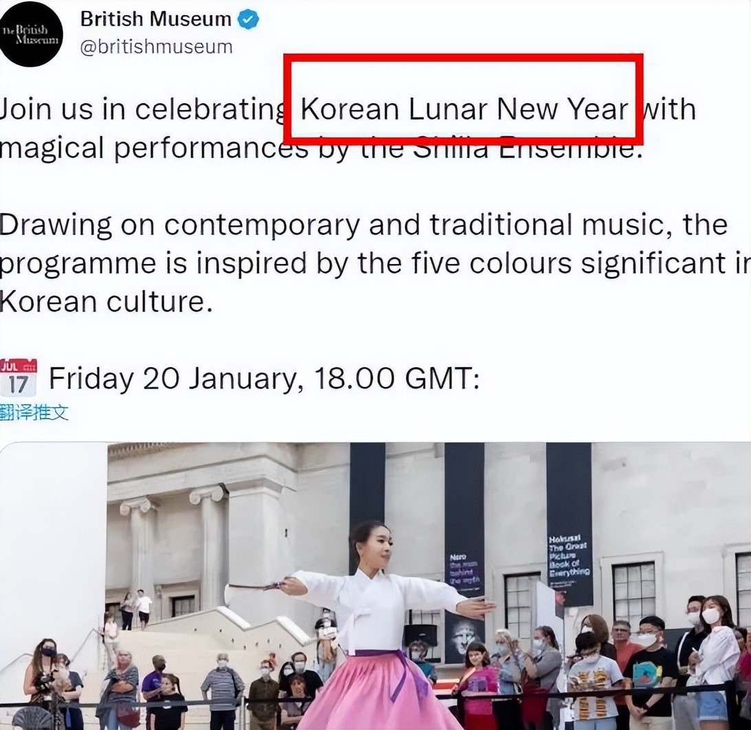 前有大英博物馆公开喊出“Korean Lunar New Year(韩国农历新年)