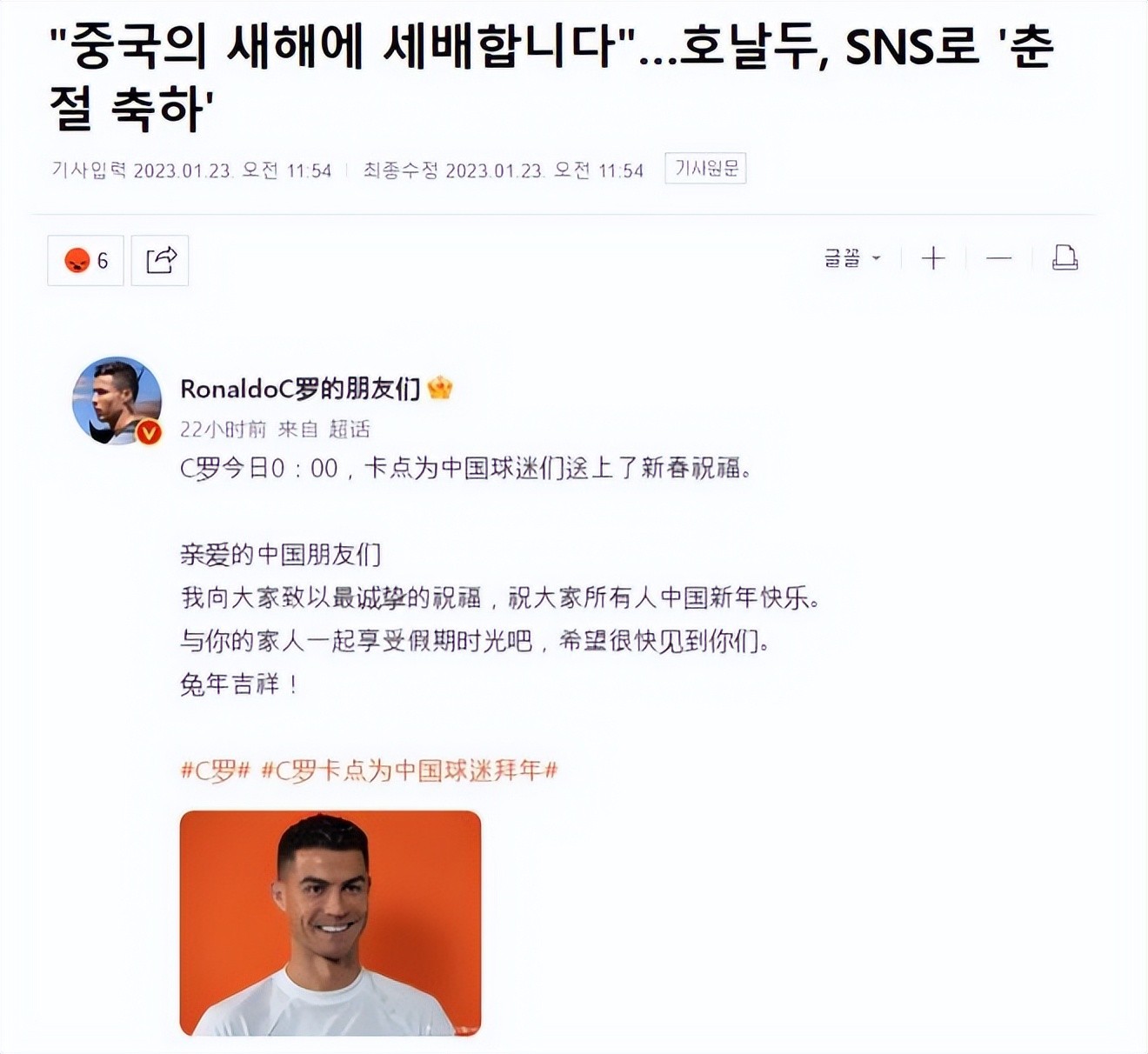 韩媒看到这个炸了,马上抵制C罗,怒骂C罗,说葡萄牙人没文化,不应该写Happy Chinese New Year”,要写“Happy Lunar New Year”!