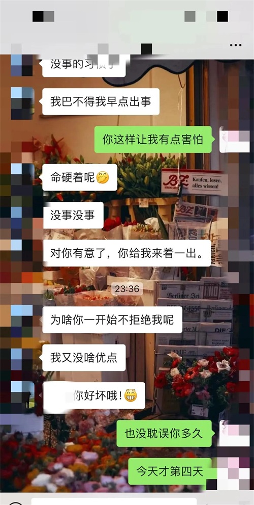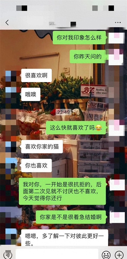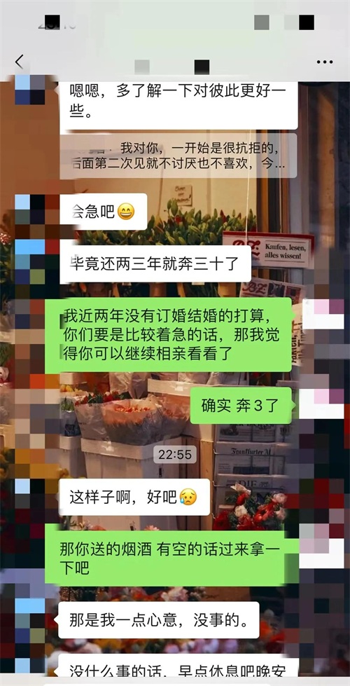 我跟这个相亲对象认识的时间不长,才四天而已。第一天,是媒人带着我们见的面,吃了顿午饭,就各自回家了。说实话,初次接触感觉平平,所以当天他在微信上找我聊天,我回应得比较冷淡。
