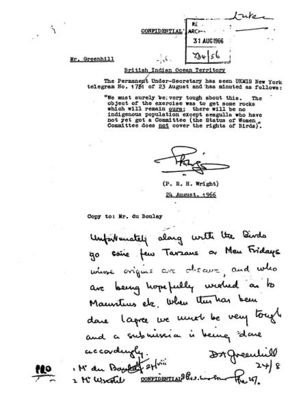 为了便于进行军事化管理,从1966年至1973年,查戈斯群岛上的约2000名居民被从世代居住的岛屿驱逐出去,"强制移民"到塞舌尔和毛里求斯,他们也丧失了世代赖以生存的岛礁和海洋,许多人的生活从此没有着落,有人还因此自杀。