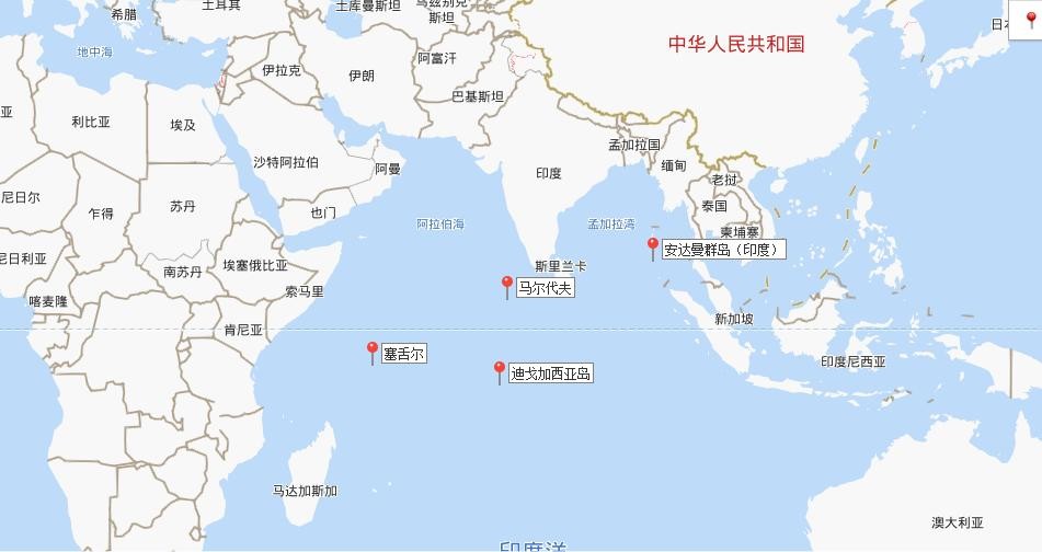 第二是马尔代夫群岛:位于印度大陆西南方面,国际性旅游胜地,独立国家,与印度和中国交往密切;