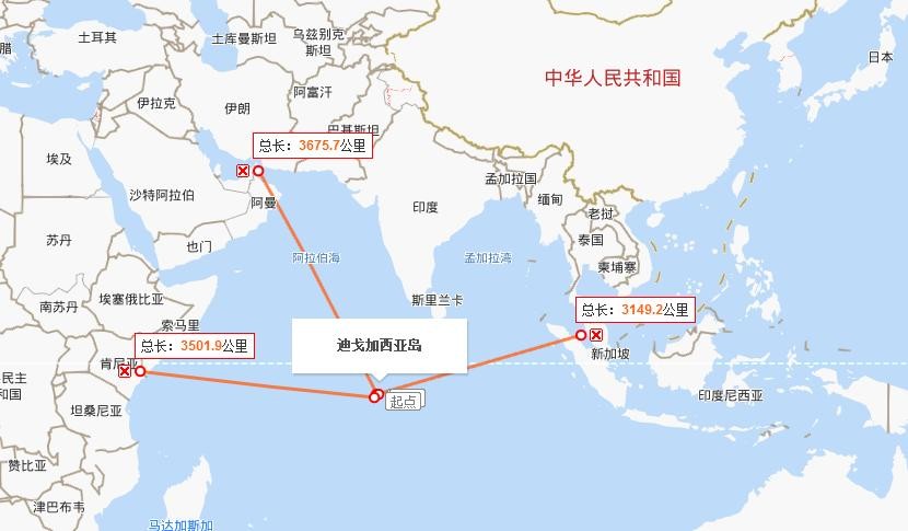 从地理位置来看,迪戈加西亚岛基地到马六甲海峡、波斯湾和东非都距离都在3000-3700公里距离,刚好适合美军大型运输机,战略轰炸机的运输和火力投送,只要在该基地部署战略轰炸机或者全球鹰无人侦察机,美军就可以非常方便地将火力投送至阿富汗、波斯湾、东北非地区。