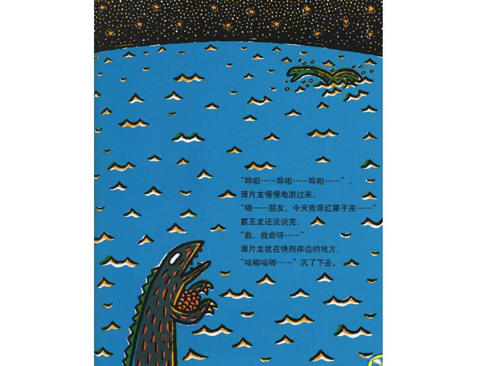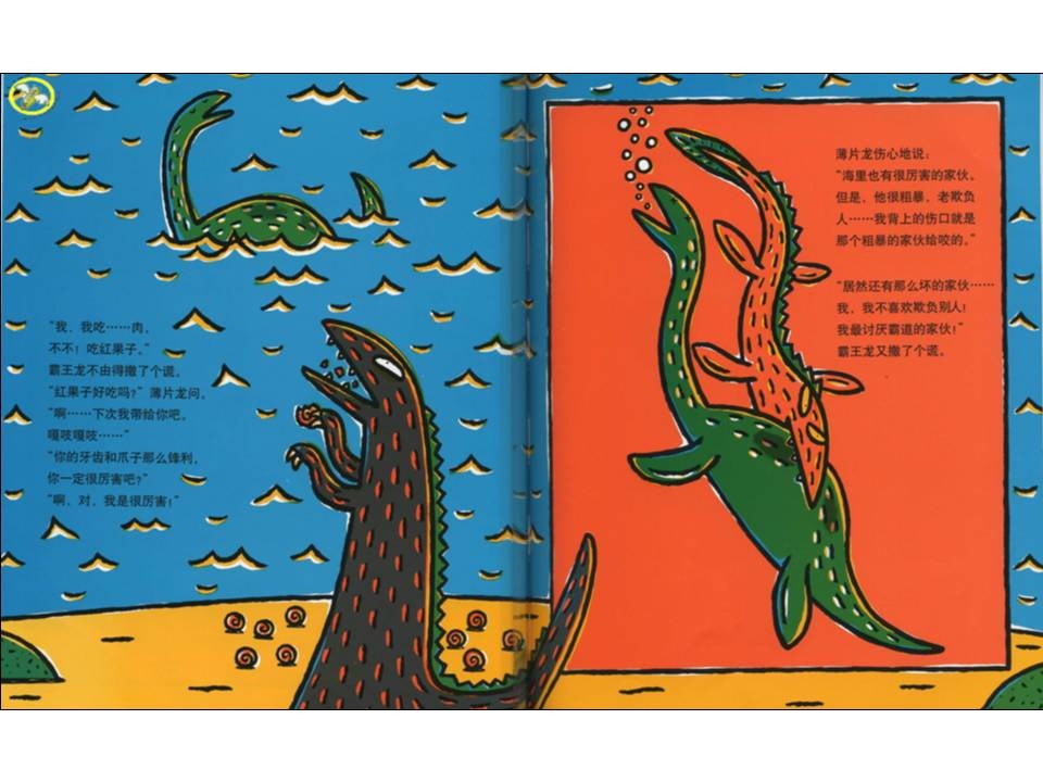 薄片龙伤心地说:“海里也有很厉害的家伙。但是,他很粗暴,老欺负人……我背上的伤口就是那个粗暴的家伙给咬的。”