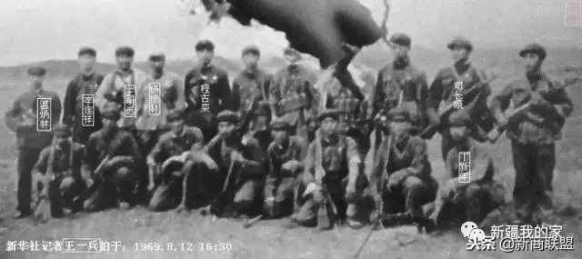 上图为八一厂记者李连祥(左一抱摄影机者)和巡逻队于1969年8月12日勘察地形后的合影。第二天,照片上的人员全部牺牲。