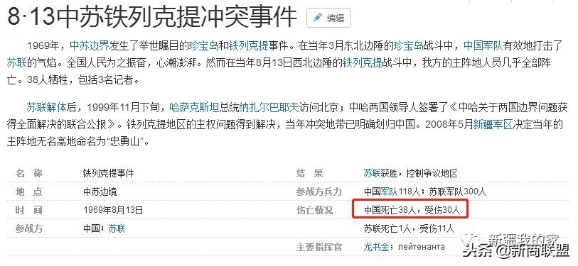 铁列克提之战,中方付出惨烈代价,此战不但很少被提及,也缺少可信的具体细节。近二十年来,铁列克提之战最常见的伤亡数字:死亡38人,受伤30人。就连百度百科也是这么介绍的: