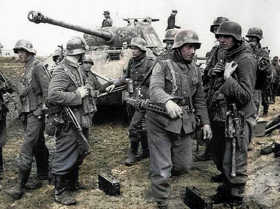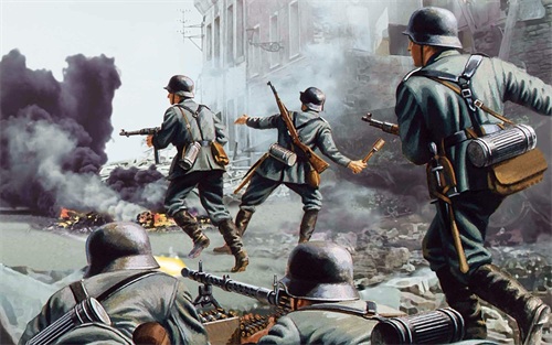 装备MG42轻机枪和STG44突击步枪的德国装甲掷弹兵 节节败退的纳粹德军却在火力上达到巅峰 让盟军吃尽苦头