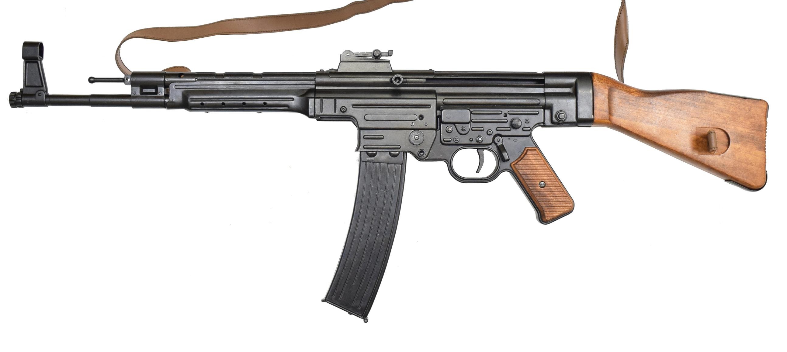 STG44突击步枪全长0.94米,枪重5.22kg,射速达到了600发每分钟。其可以让削减威力的7.92毫米弹头的初速仍然达到685米每秒,威力和精度都很理想,有效射程为500米。