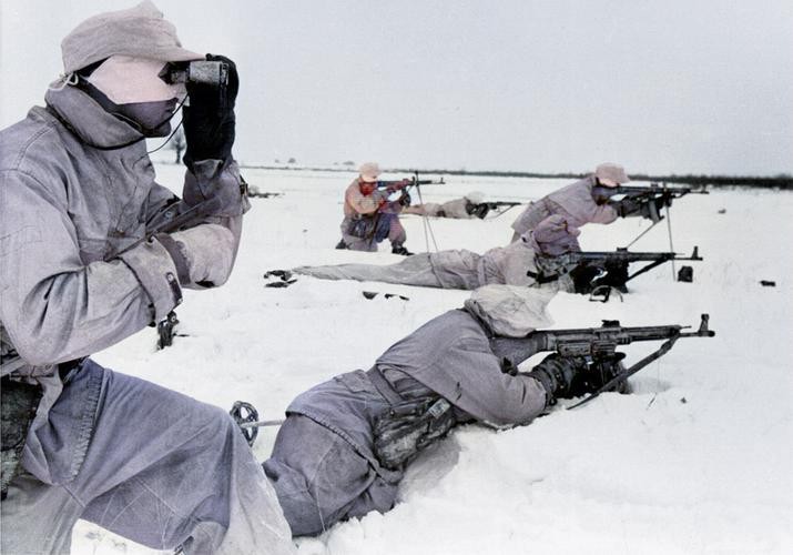 冬天在雪地中装备STG44作战的德国步兵