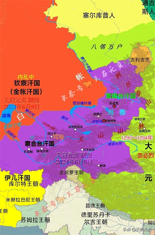 此后数年,海都陷入低谷,直到1294年忽必烈去世也没有掀起大的浪花。不过,海都依然盘踞西北,是窝阔台汗国与察合台汗国的最高首领,忽必烈即使在最强盛的时期也无法完全战胜海都。