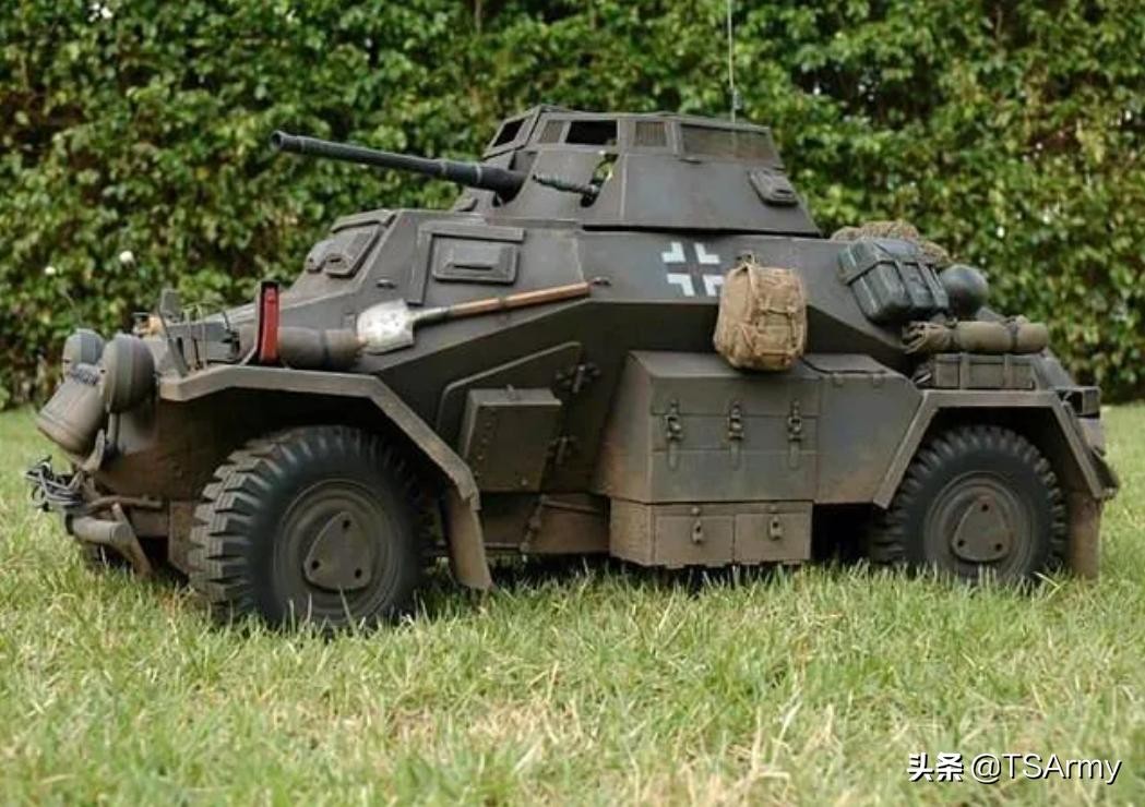 此型号是德国在上世纪30年代中期装备的一种轻型装甲车,在二战期间作为德军的侦察单位。该车搭载了一台Horch 3.5型发动机,最高时速可达到每小时90公里,凭借该车出色的机动性,深受德军士兵的喜爱。早期型号主要武器是一挺MG34型7.92毫米机枪,后来随着战争的需求,还为该车安装过20毫米机炮、双联高射炮、甚至是反坦克炮,基本上成为了“多用途装甲平台”,设计非常的前卫,具有现代化多用途装甲车的意义。