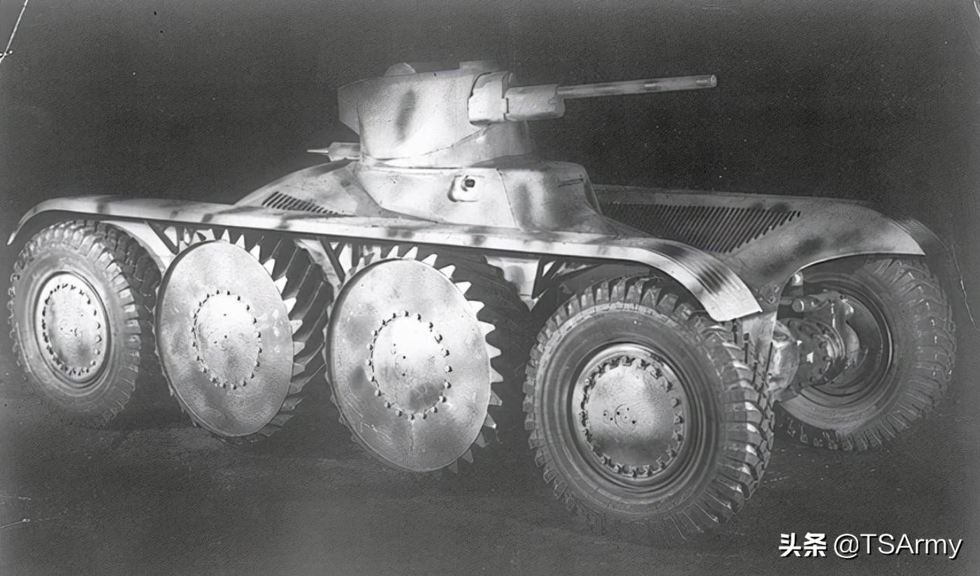 T18诞生在40年代初期,无论是防护、火力都达到了当时坦克的标准,采用8x8轮式驱动,最大装甲厚度50毫米,主要武器是一门M1型50毫米战车炮,副武器是一挺7.62毫米M1919型同轴机枪,全车战斗重量26.8吨,最高时速能达到每小时80公里,但这种装甲车美军并没有采用,而是有少量被二战期间的英军,应用到非洲战线上。