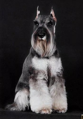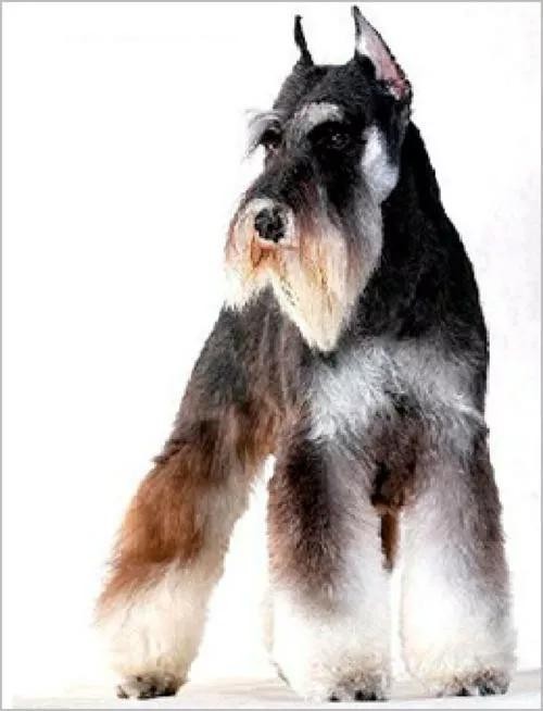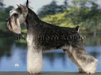标准型雪纳瑞标准雪纳瑞犬的底毛排列是非常紧密的,而且很粗硬,属于刚毛那一类的,分布非常的浓密,手感十分柔软。它有的披毛是非常粗糙的,逆向的从它的毛发纹理来看,毛发的生长方向朝后的,不但没有光滑感,而且也很不平。身上的披毛(毛发)在修剪以后十分的明显,不过却只显出了身材的线条。它最最重要的特征就是被毛的质地,如果是犬类比赛,最为标准的后背毛发应该在0.75到2英寸的长度,为了突出它的这一特点,标准雪纳瑞犬的毛发还需要修剪的地方是头部、耳朵、颈部、胸部、腹部和尾巴下面。它有眉毛和胡须,是因为它的口吻和眼睛上面长有非常长的毛发;腿上的毛发和身躯上的毛发相比要长一些。这些“修剪”可以让毛发看起来有非常粗糙的质地,却不是很夸张,不会影响它工作犬的优雅、干净的外观效果。缺陷:如果标准雪纳瑞犬出现有非常柔软的、十分光滑的,有卷曲样子的、稀少或蓬松的被毛;过于长或短;有非常稀少的底毛,或者底毛有缺少的现象;太过于修饰或没有修饰的,都属于缺陷。