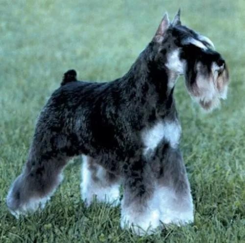 标准型雪纳瑞,以它的拱形眉毛、粗硬的小胡子和连鬓胡子著称。是健壮、大型的家犬,对主人深有感情。具有十分充沛的精力,而且它的身材非常的健壮、魁梧,在它十分健康的身体结构上,肌肉发达有力,骨量十分的充足;身高和体长组成一个正方形的结构。标准雪纳瑞犬有十分浓厚密集的被毛,并且非常的粗糙、坚硬,还凹凸不平,其实这些特点对于它这种品种来说是很重要的,它的眉毛是弯弯的,胡须是刚毛类型的。