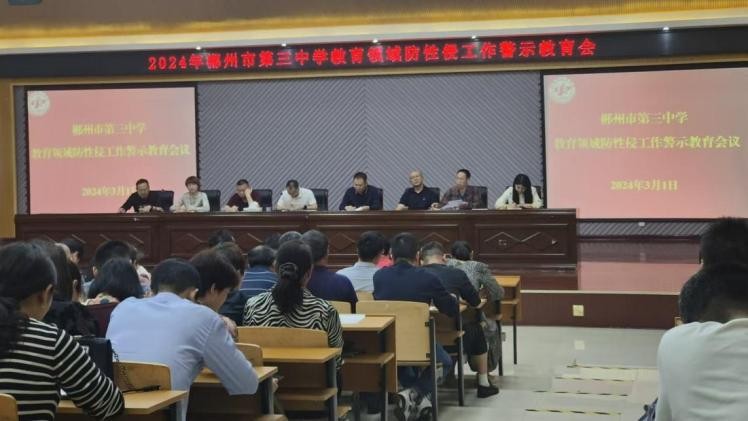 为有效保护未成年学生免遭性骚扰、性侵犯,该校对全体教职员工实行“六个严禁”:一是坚决杜绝与学生发生恋爱关系和性关系;二是坚决杜绝抚摸、故意触碰学生身体特定部位等猥亵行为;三是坚决杜绝向学生作出具有调戏、挑逗或者具有性暗示的言行;四是坚决杜绝向学生展示、传播包含色情、淫秽内容的信息、书刊、影片、音像、图片或者其他淫秽物品;五是严禁持有淫秽、色情的视听、图文资料;六是严禁其它任何可能构成性骚扰、性侵犯的违法犯罪行为。该校还组织全校教职工认真学习了“涉性侵强制报告制度”暨学校如发生性侵、猥亵学生案件,学校应在收到侵害案件报告后2小时内书面报告区教育局和公安机关,超过2小时视作迟报,超过12小时视作瞒报,相关责任人将被严肃追责。