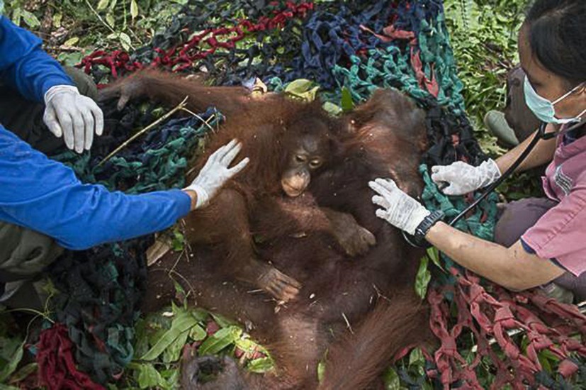 印尼动物保护组织解救并把红毛猩猩放归自然