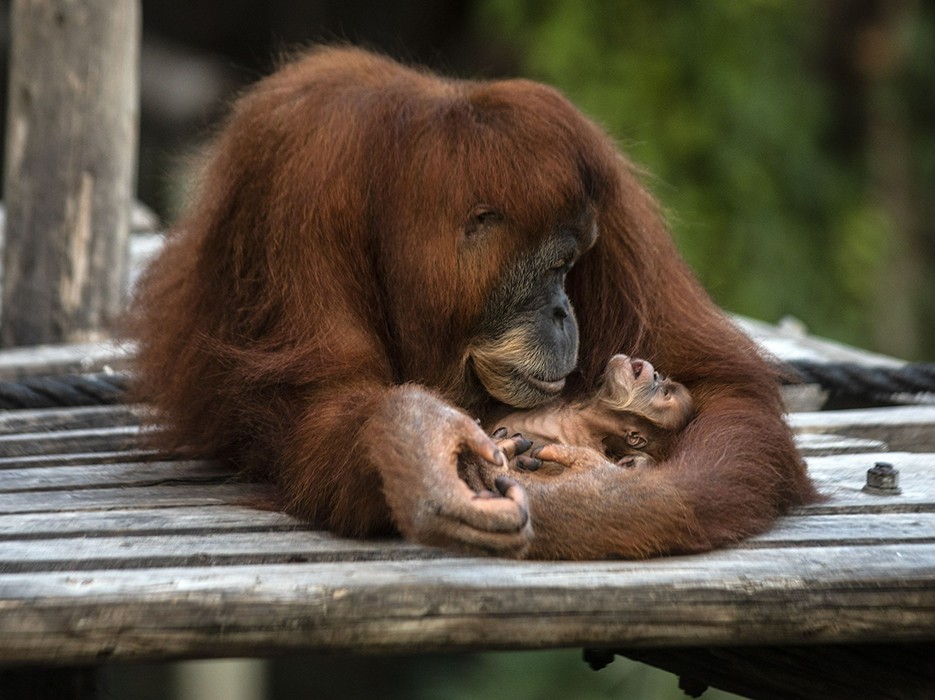 只有在幼崽和母亲之间,红毛猩猩才会展现出高智商动物特有的社会化。