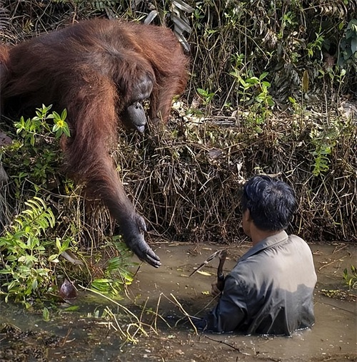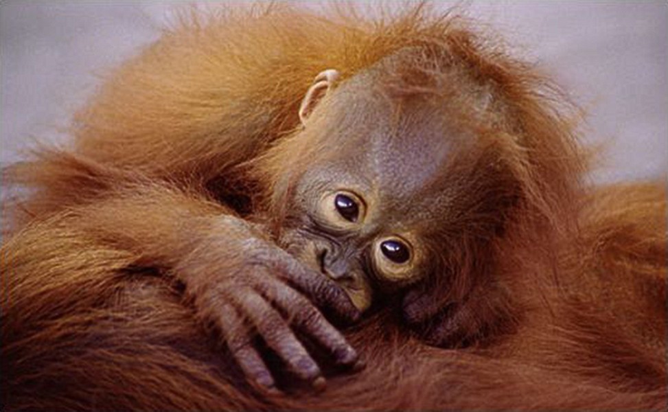 印尼的红毛猩猩是人科、猩猩属的动物,它们与人类基因的相似度高达96.4%,是除了黑猩猩和倭黑猩猩以外,和人类亲缘关系最近的动物,也是智力最高的动物之一。