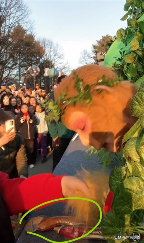 “‘西游天团’期待已久。清明节早就计划好带着孩子来这了。”一位来自哈尔滨的先生带着儿子跟着队伍往前移动,孩子手里拿着哈尔滨红肠在记者面前晃了晃,“这是给孙悟空的礼物。”