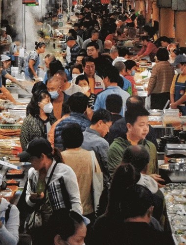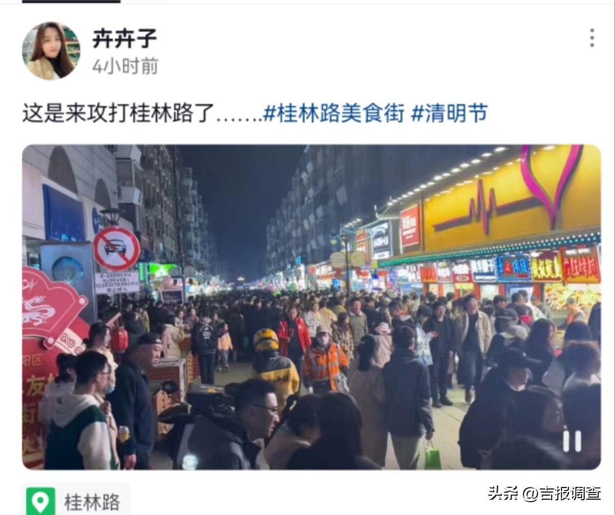 在美食中感受烟火气,游客们打卡长春美食,这有山、桂林路、摩天活力城等美食购物打卡地,迎来了“人从众”模式。网友“卉卉子”打趣地说,“这是来攻打桂林路了……”