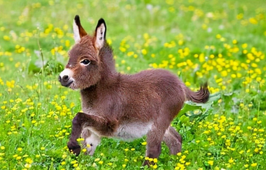 迷你驴是一种杂交动物,有黑色、灰色、棕色等多种花色,它们对主人十分忠诚,性格活泼。