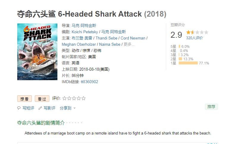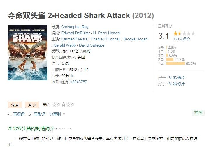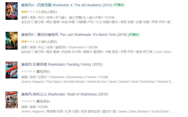 第二部推荐的这个多头鲨鱼系列,部部评分都在3分以下,但是已经拍了4部了。