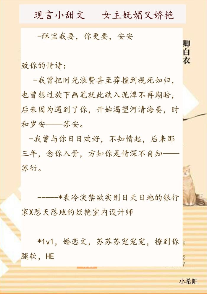 今天推荐三本现代言情,女主妩媚又娇艳,不知道男主接不接得住。女主外表妖艳,性格冷淡,偏偏惹了一个不能摆脱的男主,都是小甜文。
