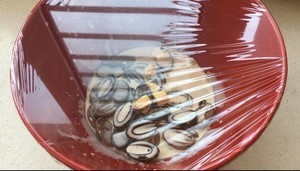 2.加入水饴,不要搅拌,表面覆盖保鲜膜,放置3到5分钟