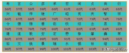 明朝初年,朱元璋曾赠孔氏八个辈字:即“公、彦、承、弘、闻、贞、尚、胤”供起名用。后因洪武元年五十六代孔希学及洪武十七年第五十七代孔讷先后袭封衍圣公。明末由第六十五代衍圣公孔胤植奏准,崇祯帝赐字“兴毓传继广,昭宪庆繁祥。”至清朝皇帝又赐字“令德维垂佑,钦绍念显扬”。民国八年由七十六代衍圣公孔令贻又立二十字咨请当时的北洋政府核准公布。亦即第八十六代至一百零五代。即“建道敦安定,懋修肇益常,裕文焕景瑞,永锡世绪昌”。