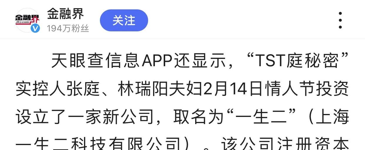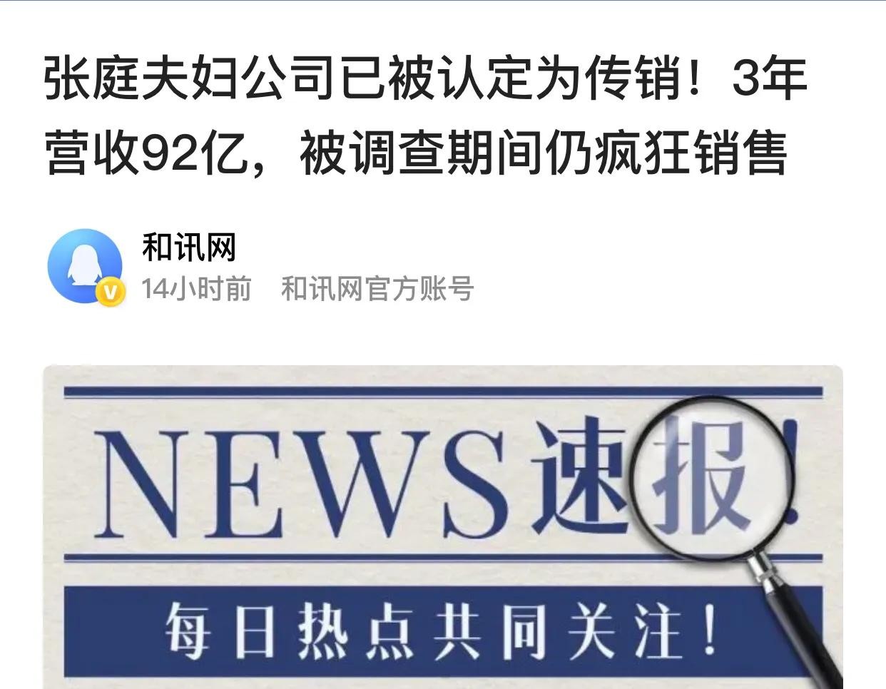 4月9日,张庭夫妇所有的庭秘密(TST)的运营主体已被市场监管部门认定构成组织策划传销违法行为,TST营运3年,营业额达92亿元,被没收违法所得1927.99万元,罚款170万元。