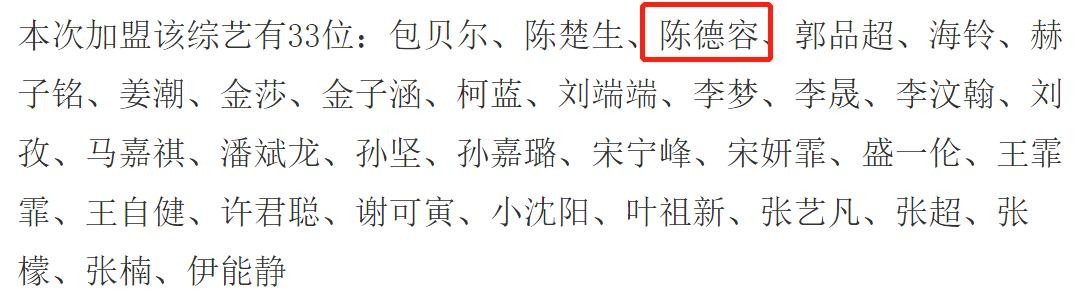 在离婚之后,陈德容开始回归影视圈,并开始参加一些综艺。12月9日,某档演技竞技类综艺官宣竞演嘉宾,陈德容也出现在名单上。