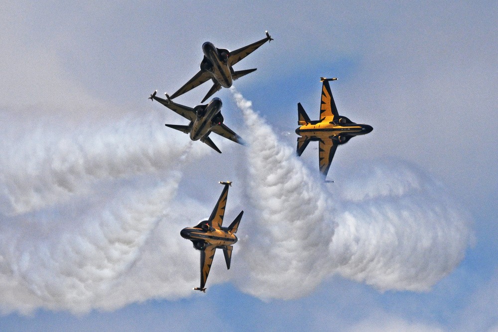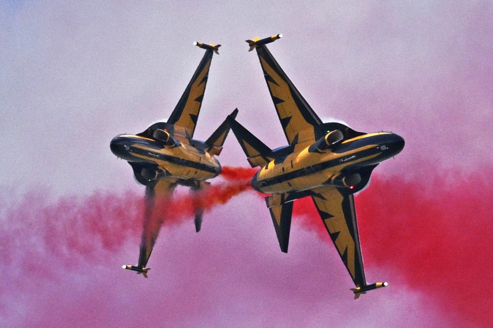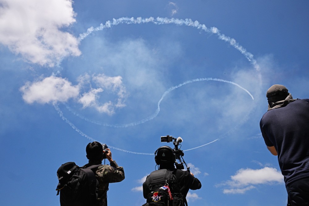 2月20日,韩国空军“黑鹰”飞行表演队在新加坡航展上做飞行表演。新华社发 (邓智炜摄)