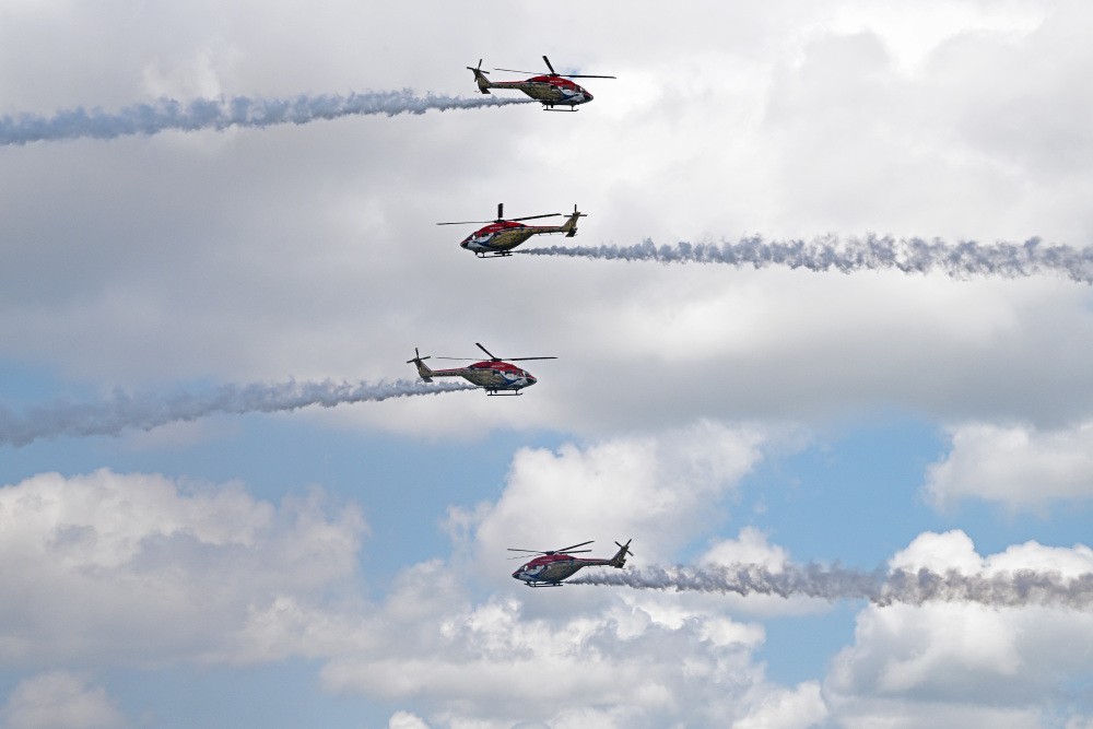 2月20日,印度空军“孔雀”飞行表演队在新加坡航展上做飞行表演。新华社发 (邓智炜摄)