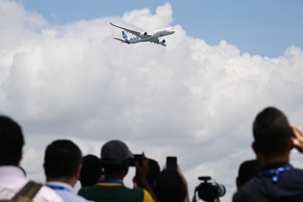 2月20日,一架空中客车A350客机在新加坡航展上做飞行表演。新华社发 (邓智炜摄)