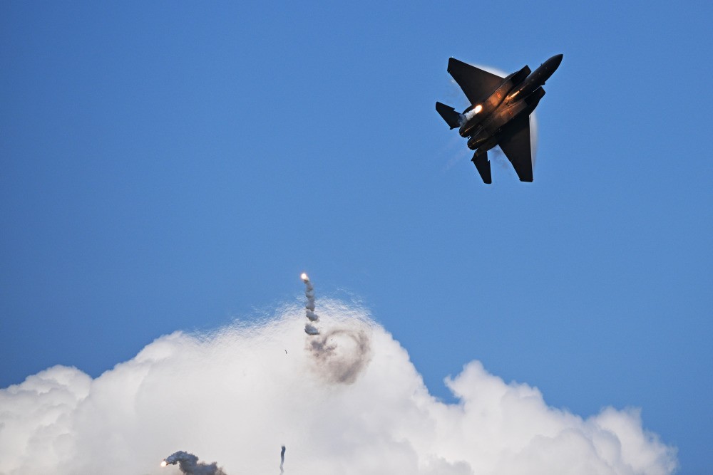 2月20日,一架新加坡空军F-15SG战机在新加坡航展上做飞行表演。新华社发 (邓智炜摄)