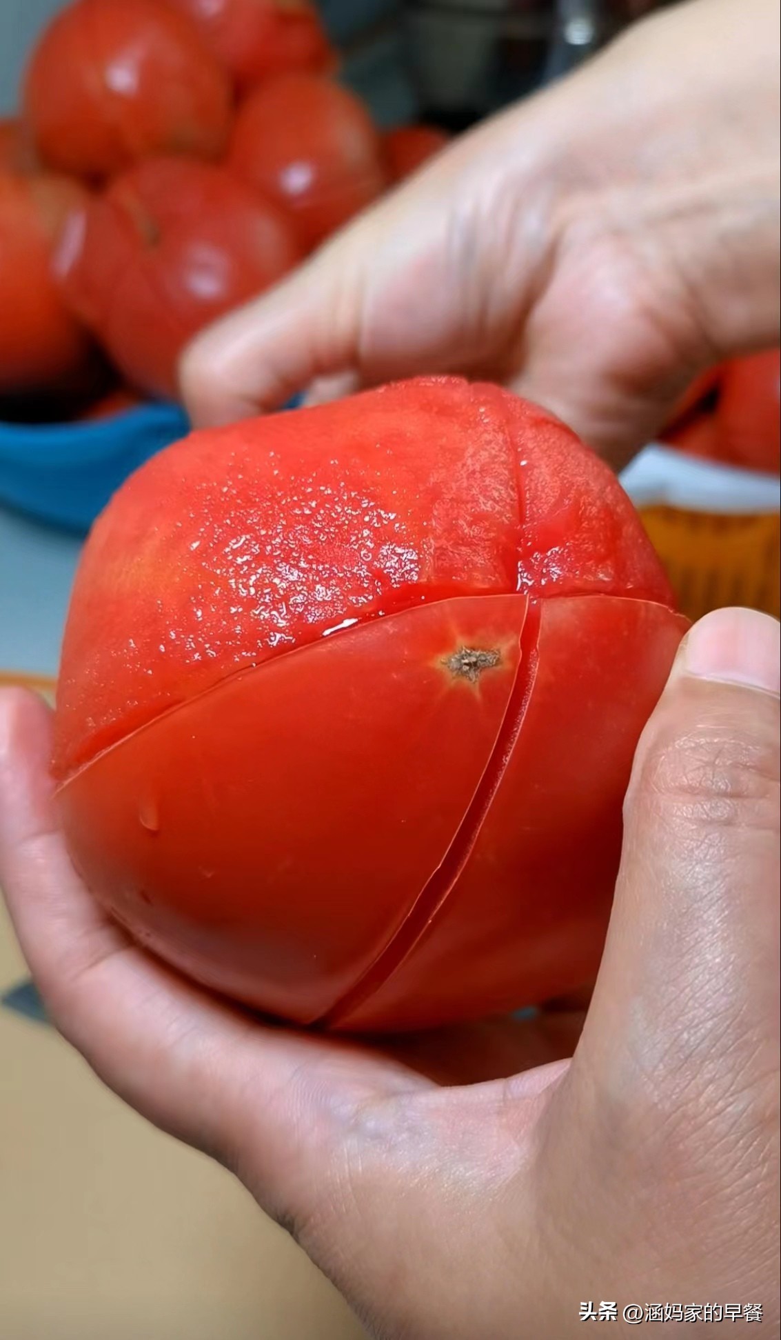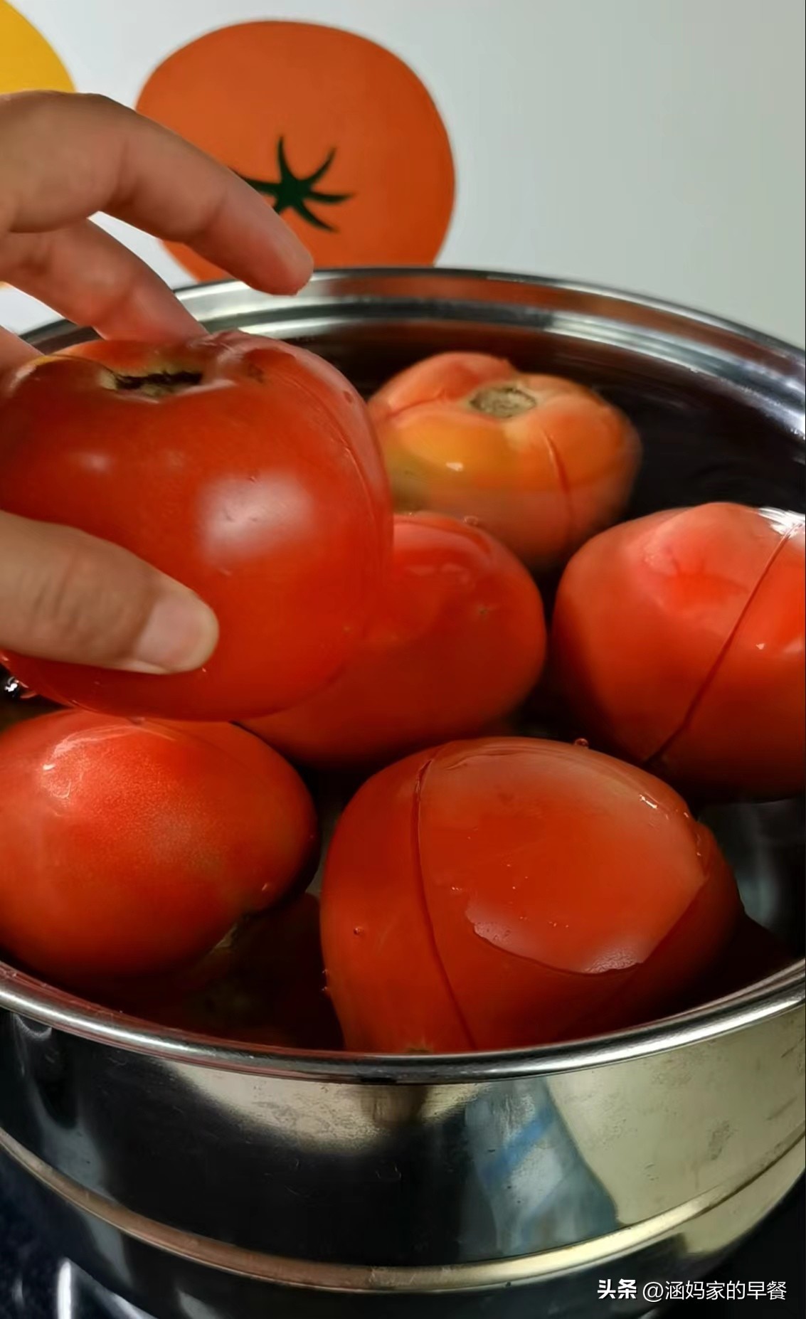 番茄划十字刀,开水锅中烫一下