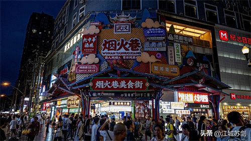 武汉这座充满活力的大都市,正在展现着它的魅力,吸引着世界各地的游客前来观光。被誉为“中国第一街”的江汉路步行街是武汉的历史、文化和现代生活的交会点,在夜色中更显繁华。江汉路的夜晚,烟火气十足。