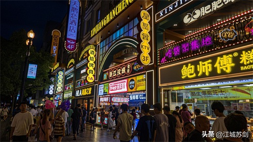 “中国第一步行街”武汉江汉路步行街夜色掠影