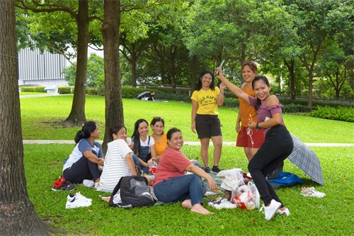 7月29日拍摄的金钟添马公园游玩的印尼佣人。